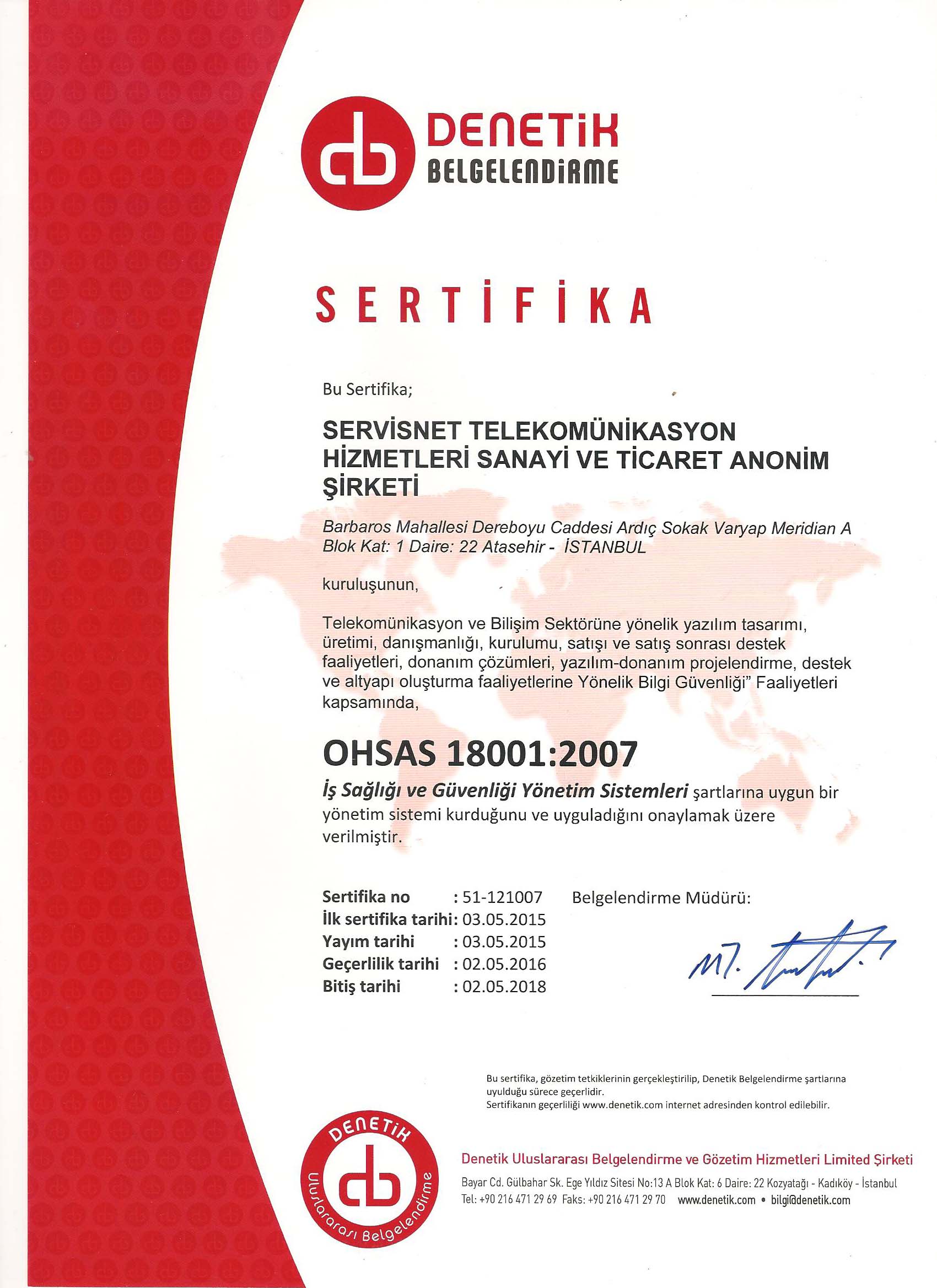 İŞ SAĞLIĞI ve GÜVENLİĞİ YÖNETİM SİSTEMLERİ SERTİFİKASI (OHSAS 18001:2007)